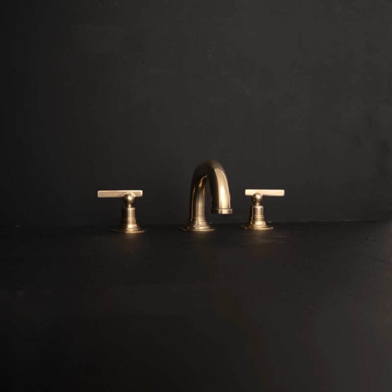 Unlacquered Brass Bathroom Faucet, Deck Mount Bathroom Faucet, Two Handles Bar Brass Faucet