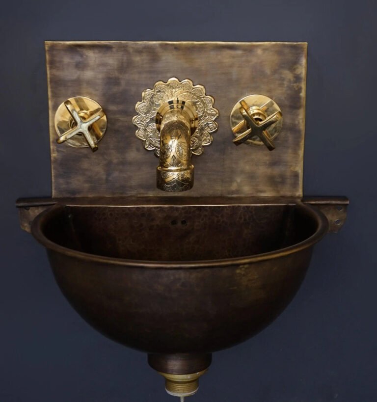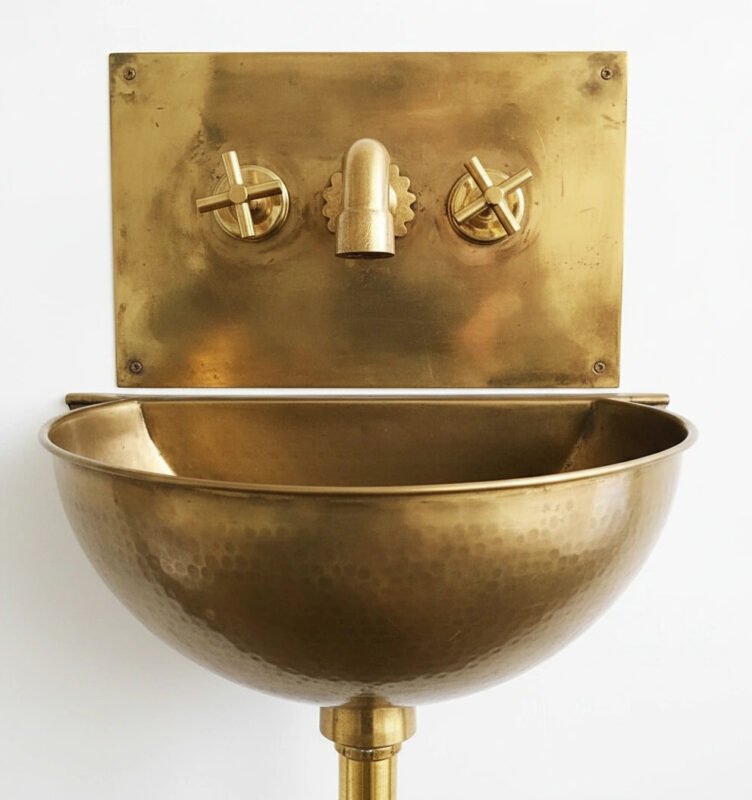 Unlacquered Brass Wall Mount Sink With Brass Mixer Faucet