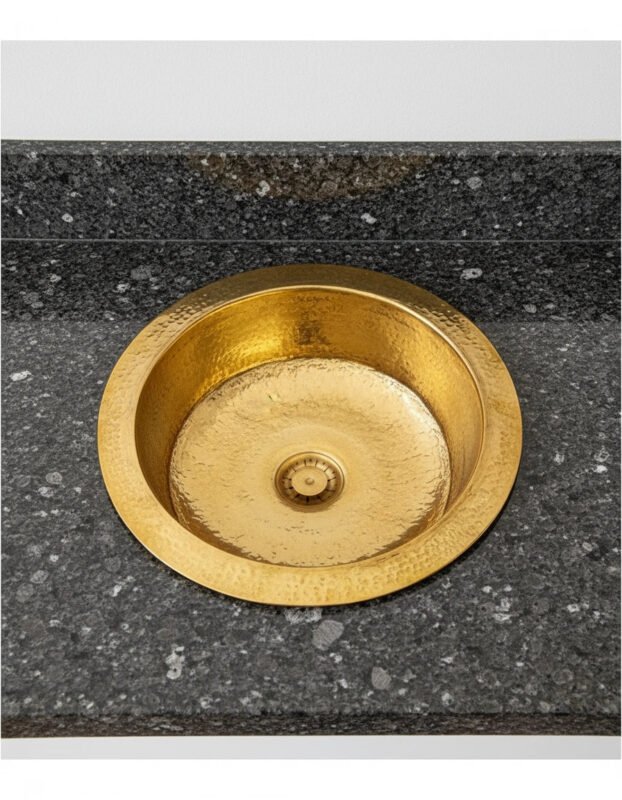 Handcrafted Hammered Brass Bar Sink – Solid Round Prep Basin with Drain