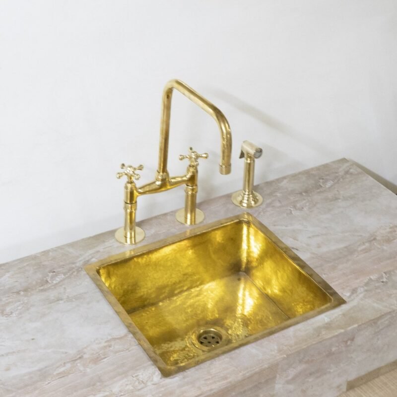 £519.90 – £599.90Price range: £519.90 through £599.90Unlacquered Brass Bridge Faucet with Sprayer and Cold Water Tap