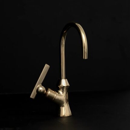 Our brass Gooseneck Faucet. Crafted from solid brass, it’s durable and timeless. The unlacquered finish adds warmth and charm. This