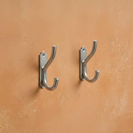 Set of 2 Chrome Wall Hooks – Handmade Double Robe Hooks for Bathroom