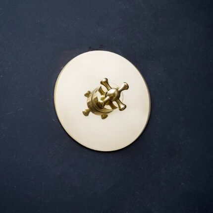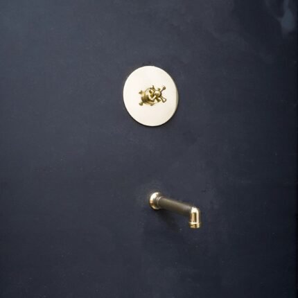 Indulge in multiple showering options with the Handcrafted Solid Brass Shower System with curved arm and rectangular brass backplate for