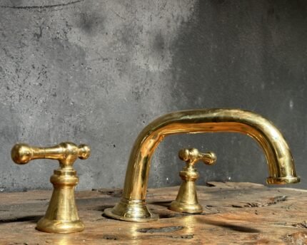 Victorian Unlacquered Brass Bathroom Faucet – 3-Hole Design