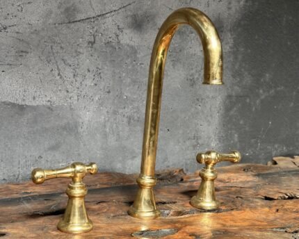 Unlacquered Brass Bathroom Faucet made from pure solid brass Spout Reach : 8 inch Spread : 8 Inch The 1/2″
