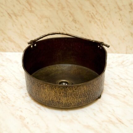 Handcrafted bathroom copper sink featuring a mesmerizing dark brown patina. Each sink is meticulously crafted to perfection, creating a stunning