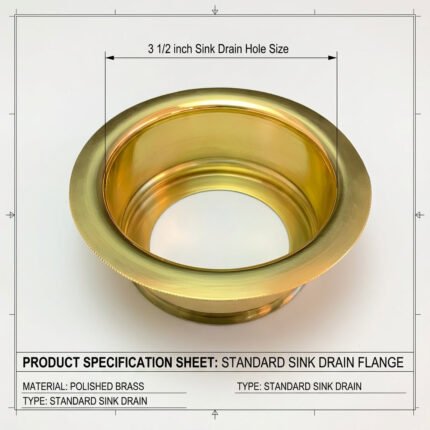 This unlacquered brass sink disposal flange with basket strainer is crafted from solid brass and designed to fit standard 3-1/2″