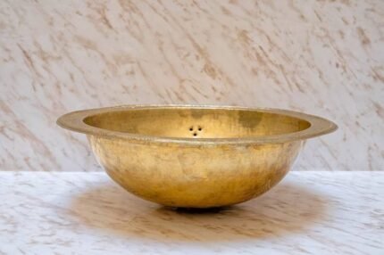 Unlacquered Brass Bathroom Sink – Hand Engraved Drop-In Vanity Basin