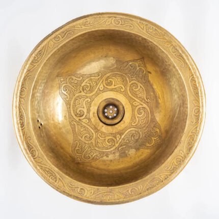 Elevate your bathroom with our Engraved Brass Bathroom Sink. Crafted with care by Zayian in Marrakech, this exquisite sink features