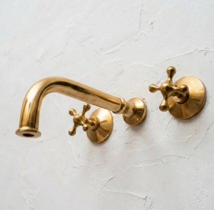 Unlacquered Brass Kitchen wall mount Faucet Handcrafted from solid brass The hot and cold mixer valves with two cross handles