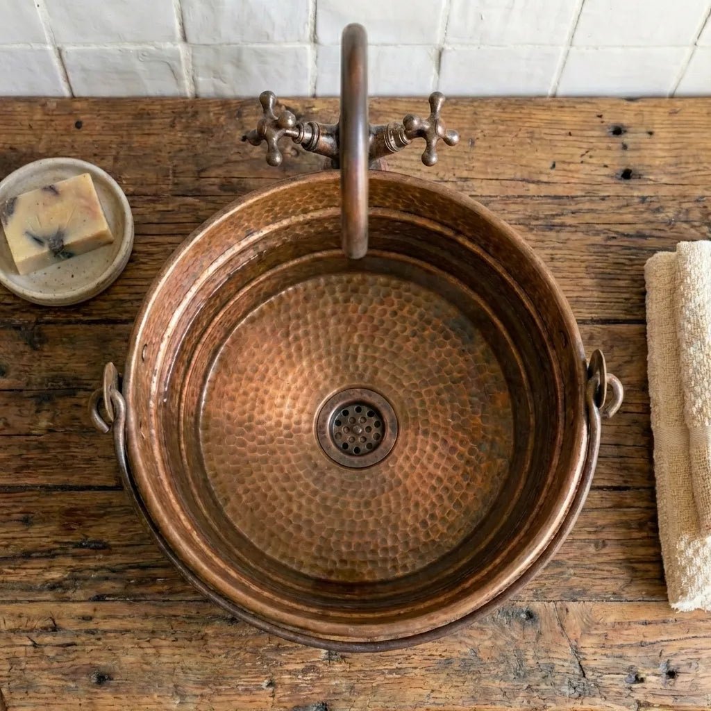 Aged Copper Hammered Bucket Bathroom Sink