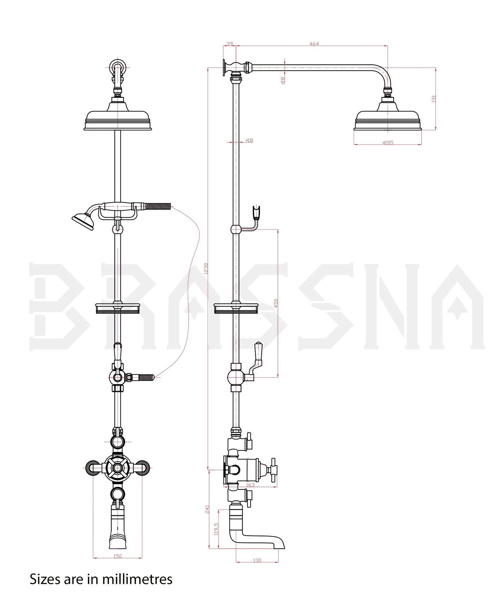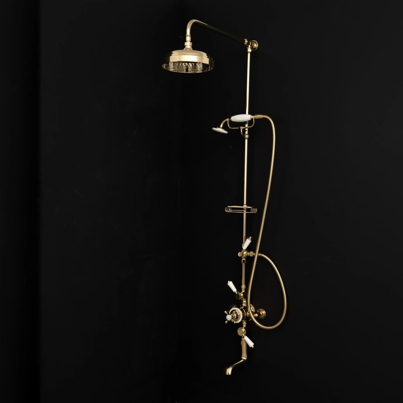 Transform your bathroom with the ultimate in luxury and control. This all-in-one Brassna solid brass thermostatic shower system features a precise temperature-maintaining valve, a wide rainfall head, a versatile handheld shower, and an integrated tub filler. Crafted from premium unlacquered brass, it will develop a beautiful, unique patina over time, adding timeless character. Includes a convenient soap holder. Experience consistent comfort, elegant design, and lasting quality every day.
