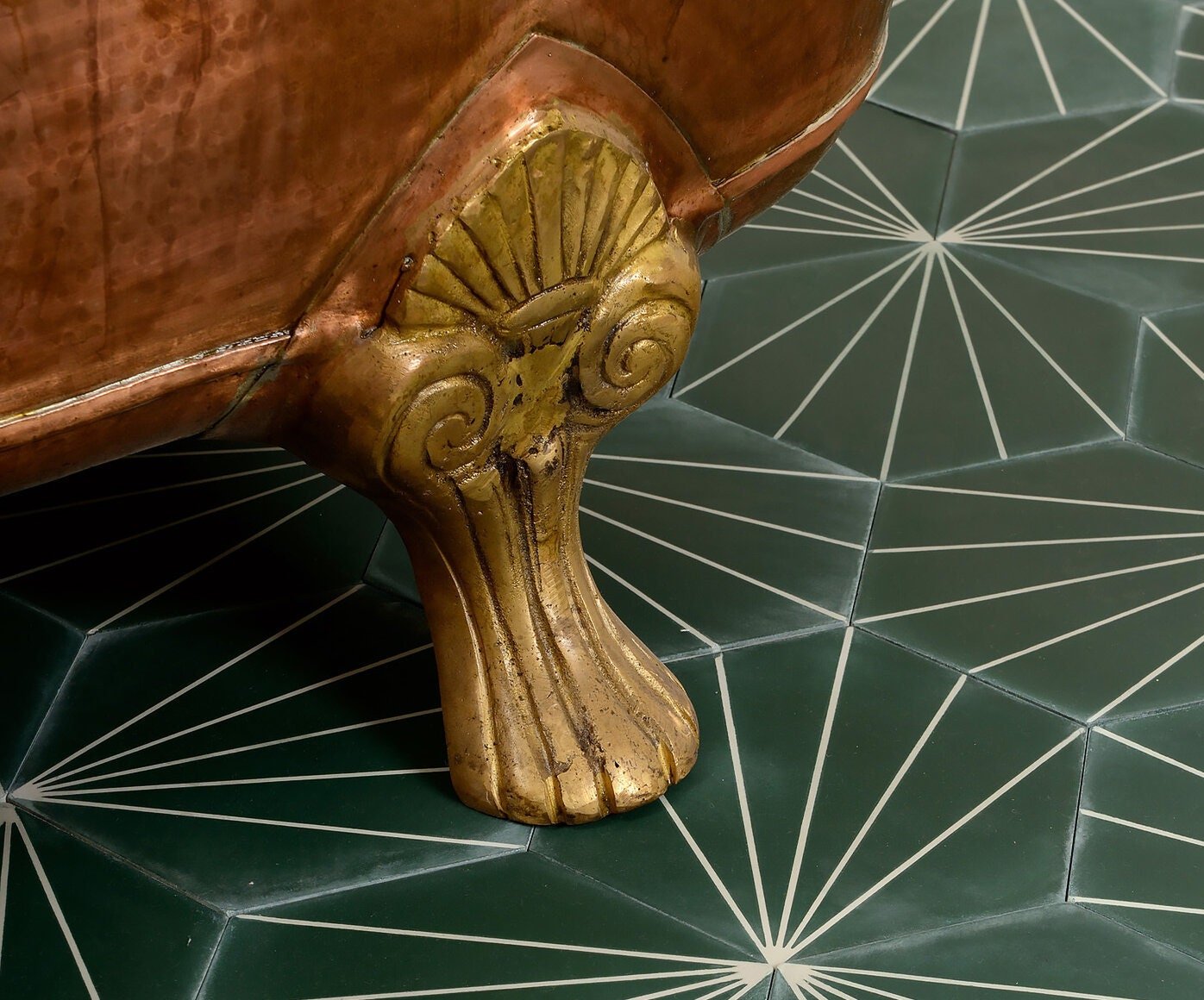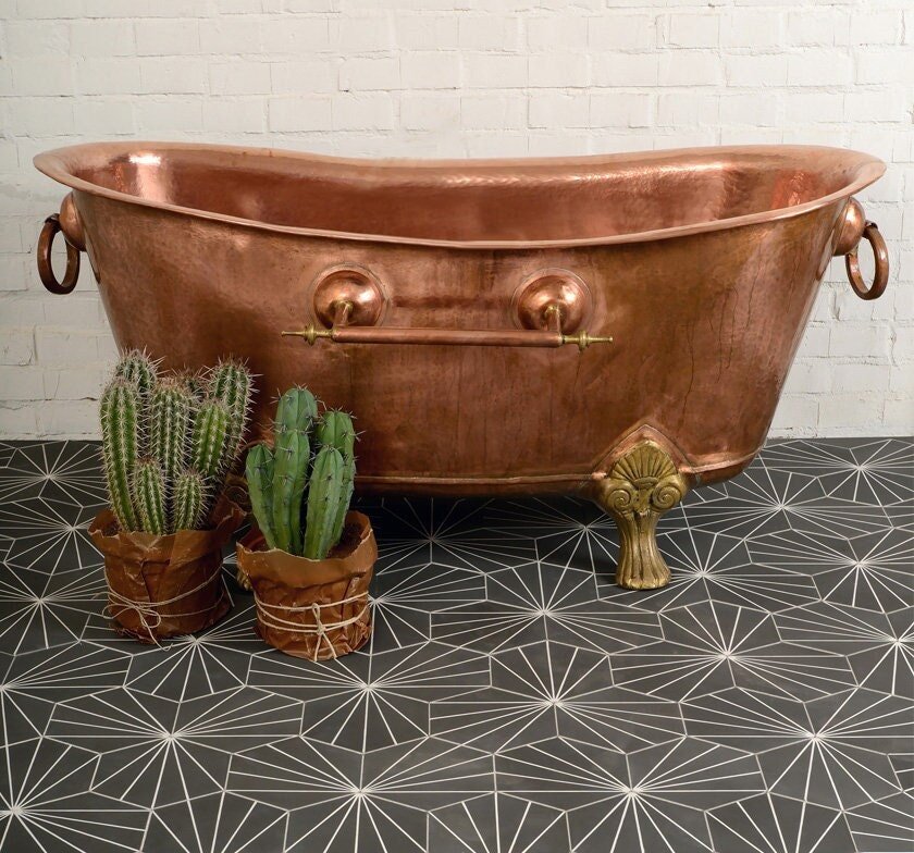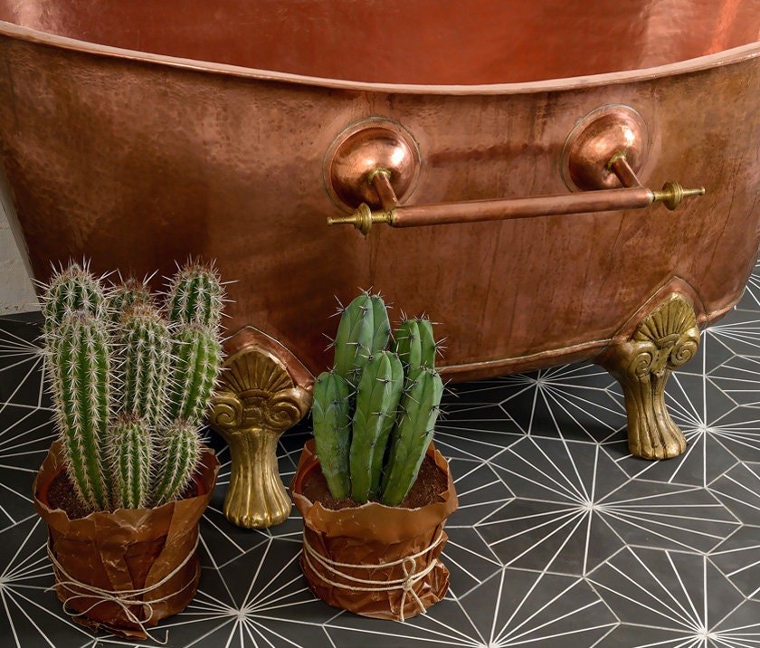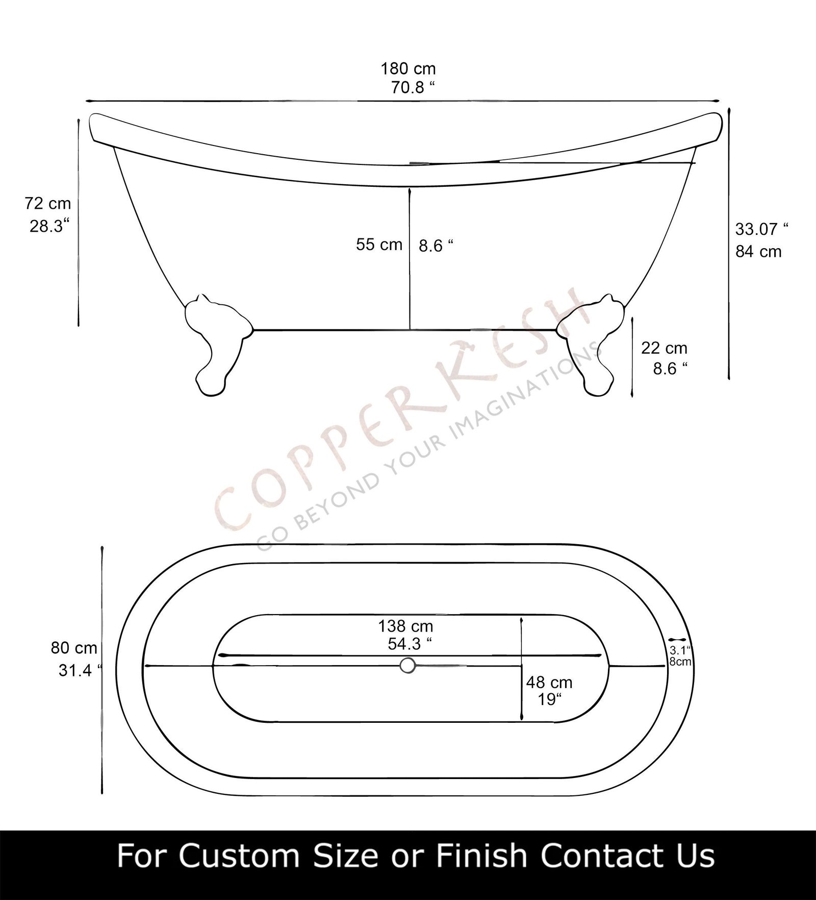 The Clawfoot Copper Bathtub is a stunning addition to any well-mannered home. With its exquisite brass feet, this exquisite tub pays homage to traditional sophistication while evoking the warmth and richness of copper. Its roomy interior guarantees a long, soothing soak, making it a haven for peace and renewal.
