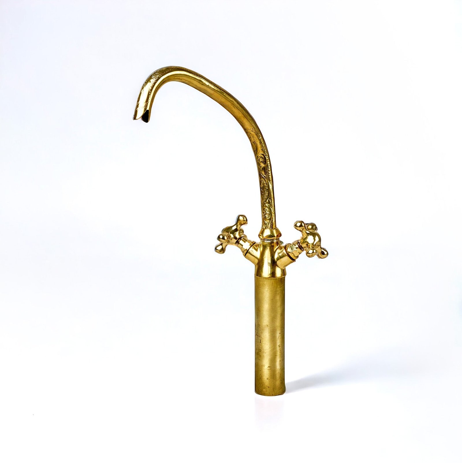 Discover the allure of the past with this This is a brass vessel sink with a decorative engraving featuring hand-etched scrollwork and botanical patterns on the exterior. Its polished interior contrasts with the textured design, and it rests on a small, ornate base. This piece blends functional elegance with traditional craftsmanship, ideal for enhancing home decor.