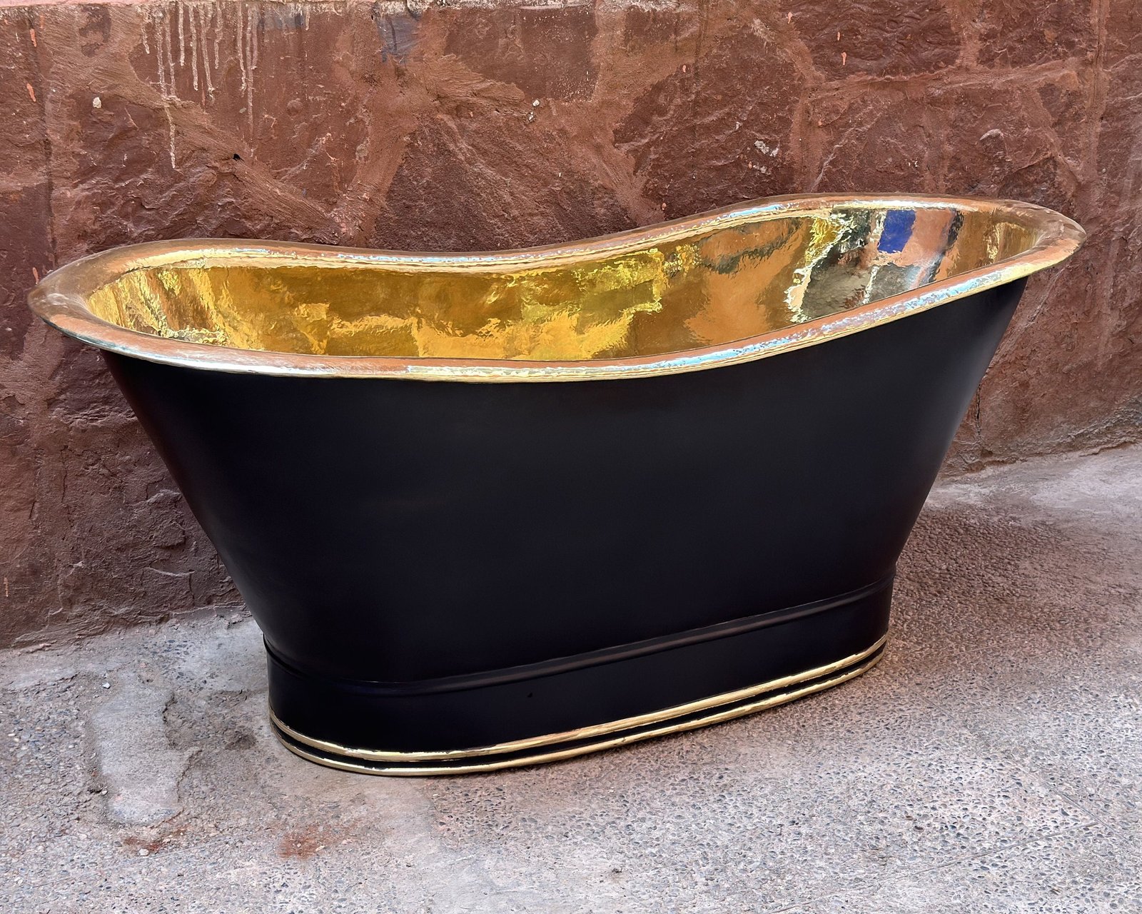 Freestanding Bathtub With Black Exterior, Brass Straight Base Bathtub, Outdoor Soaking Tub
