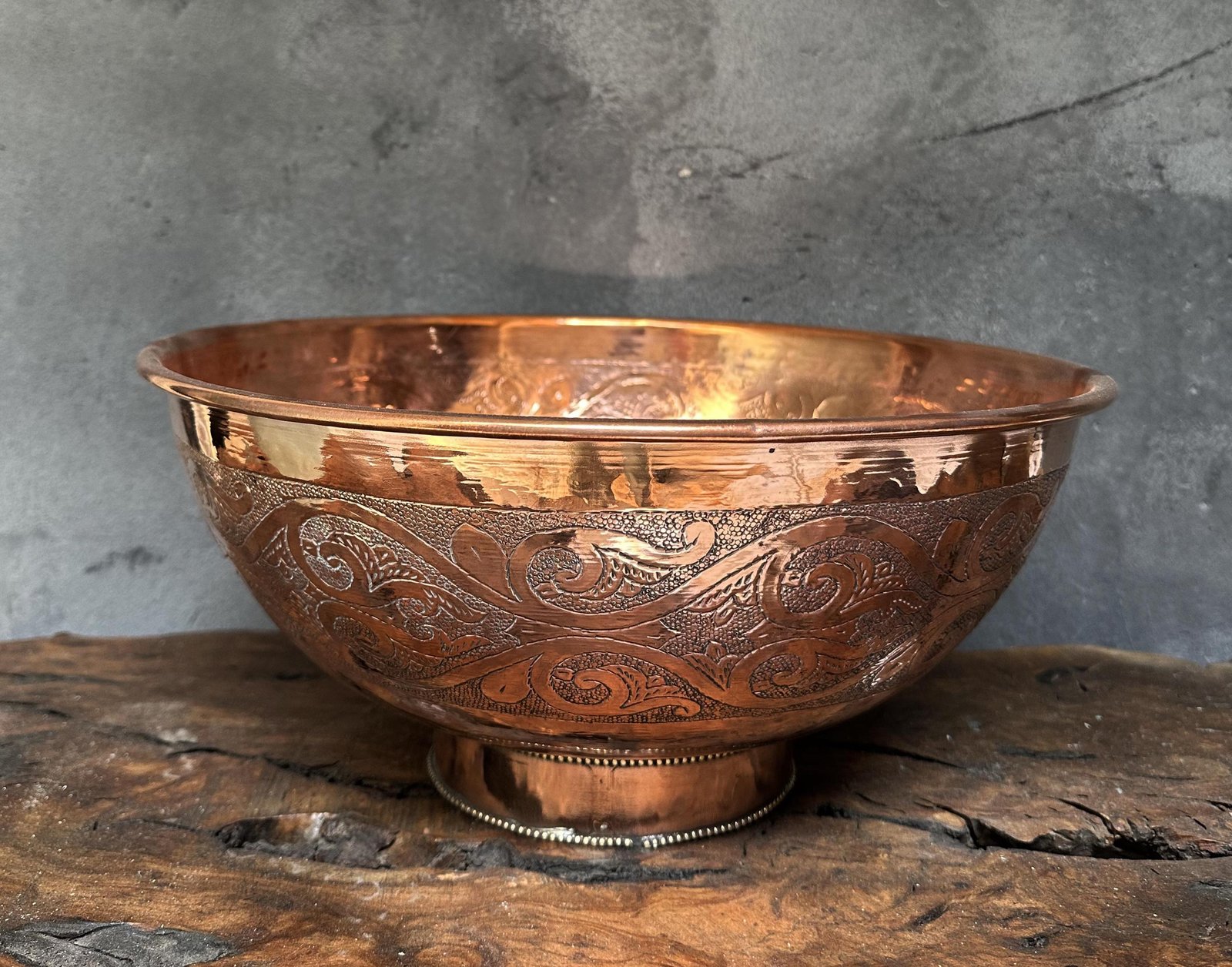 Hammered Copper Basin – Engraved Round Vessel Sink