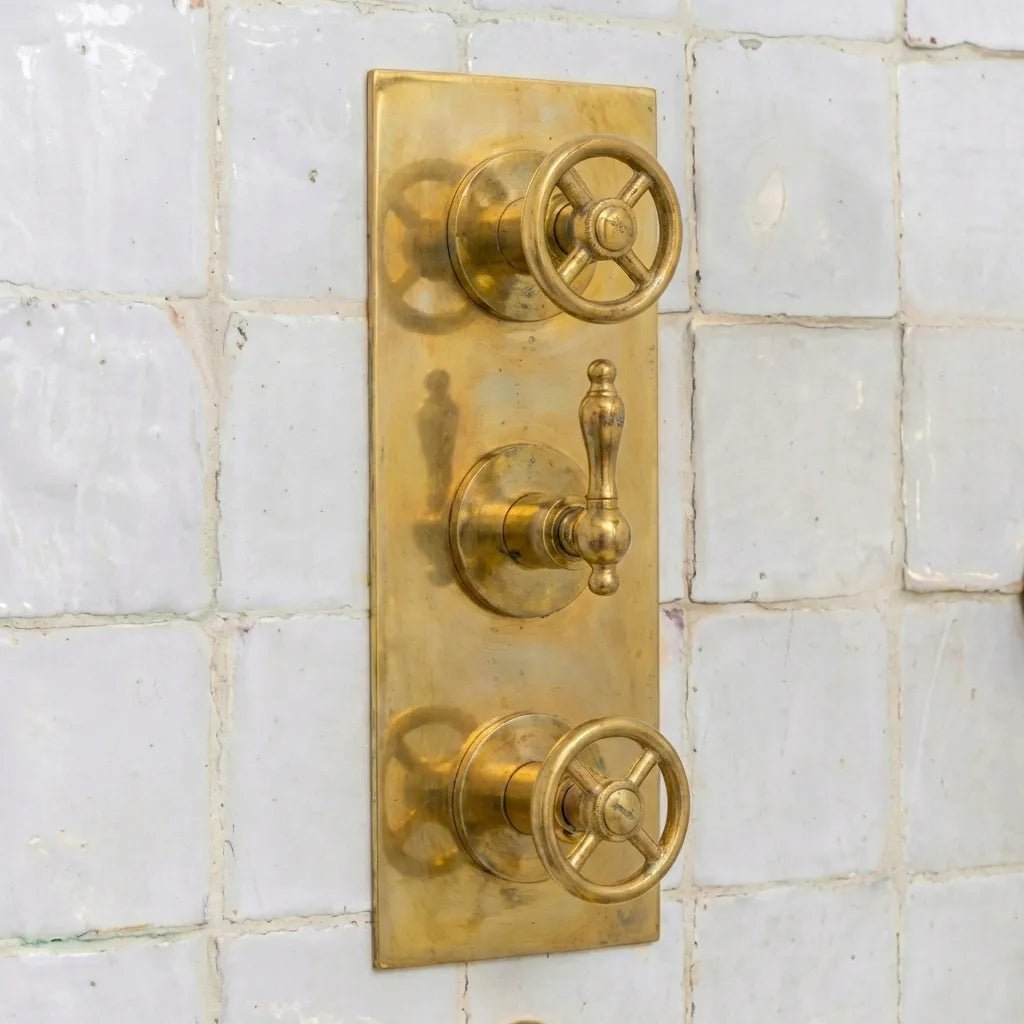 Inspired by the timeless elegance of European luxury hotels and traditional riad bathrooms, this heritage wall-mount shower system is crafted entirely from solid unlacquered brass. Designed for those who appreciate authenticity, craftsmanship, and enduring style, it brings old-world sophistication into refined modern interiors.