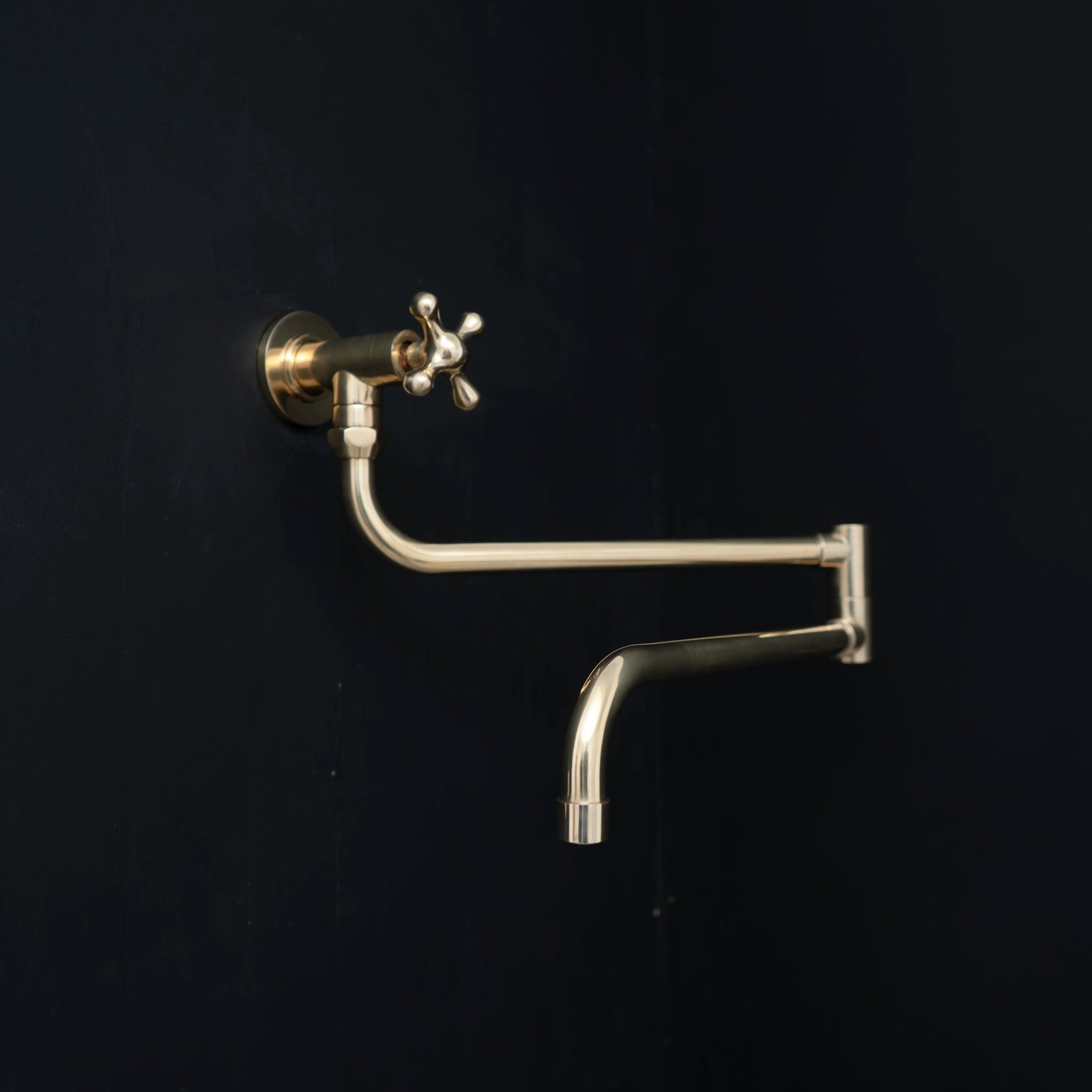 Give your kitchen a modern edge with this unlacquered brass pot filler kitchen faucet.