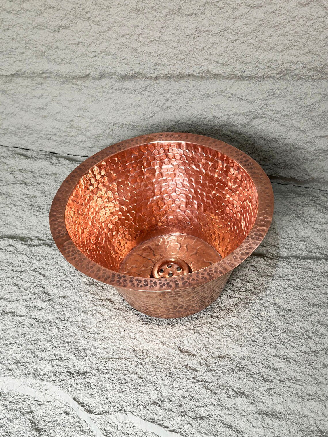 A: A hammered copper sink has a textured finish that is created by hammering the metal with a hammer by hand. This gives the sink a rustic and unique appearance. A smooth copper sink has a polished finish that is shiny and reflective( We can do both of them just make a note when purchasing ).