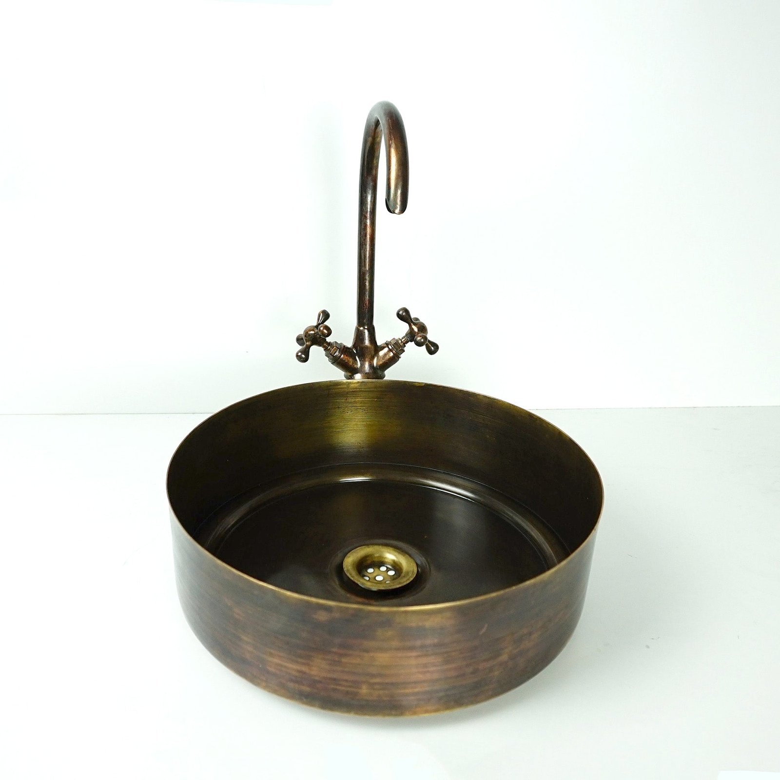 Be the first to review “Rustic Brass round Vessel sink with Oil rubbed bronze Faucet”