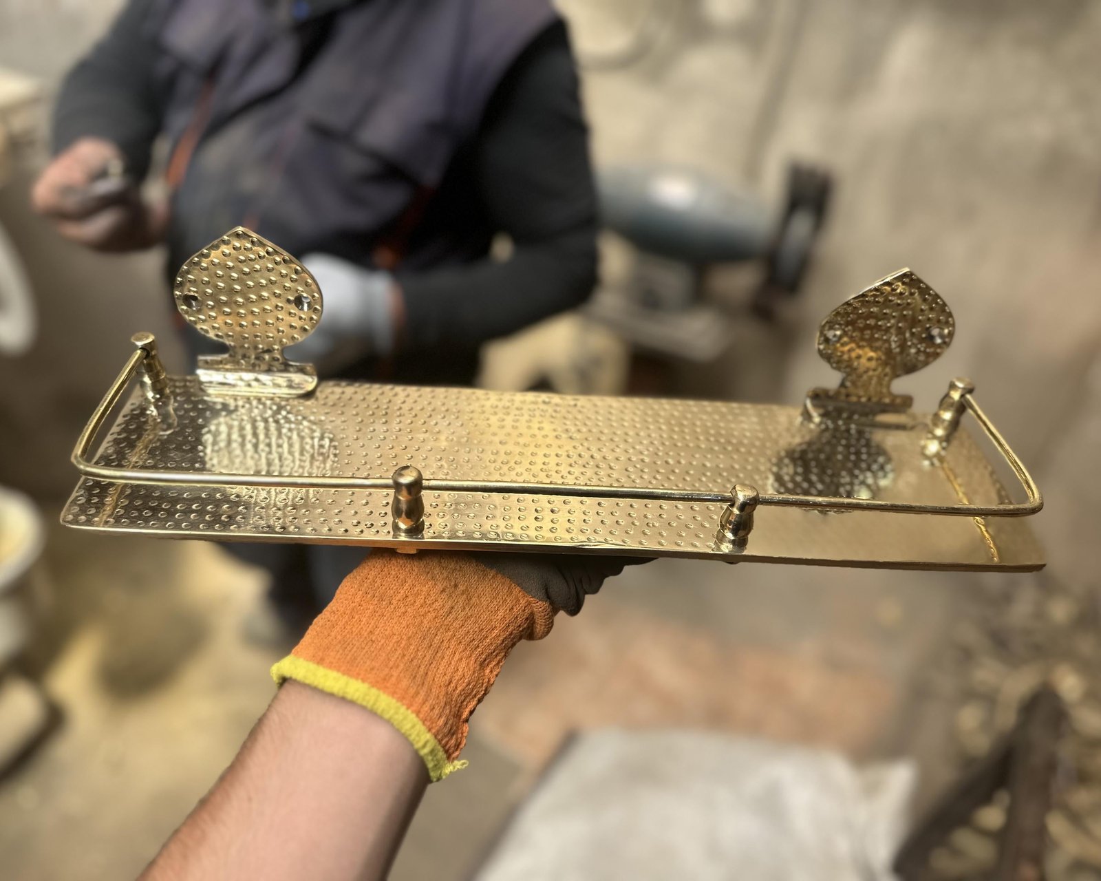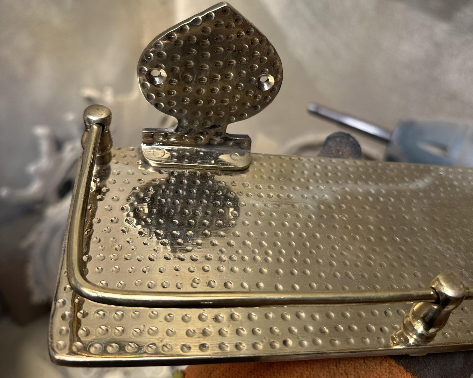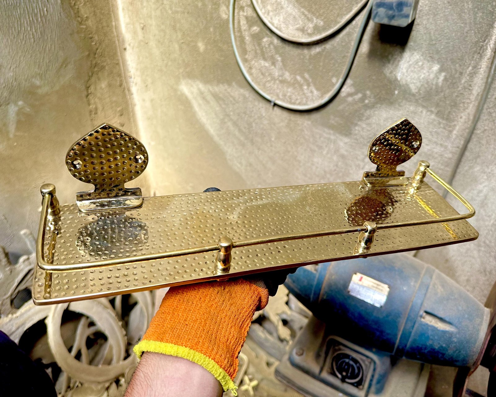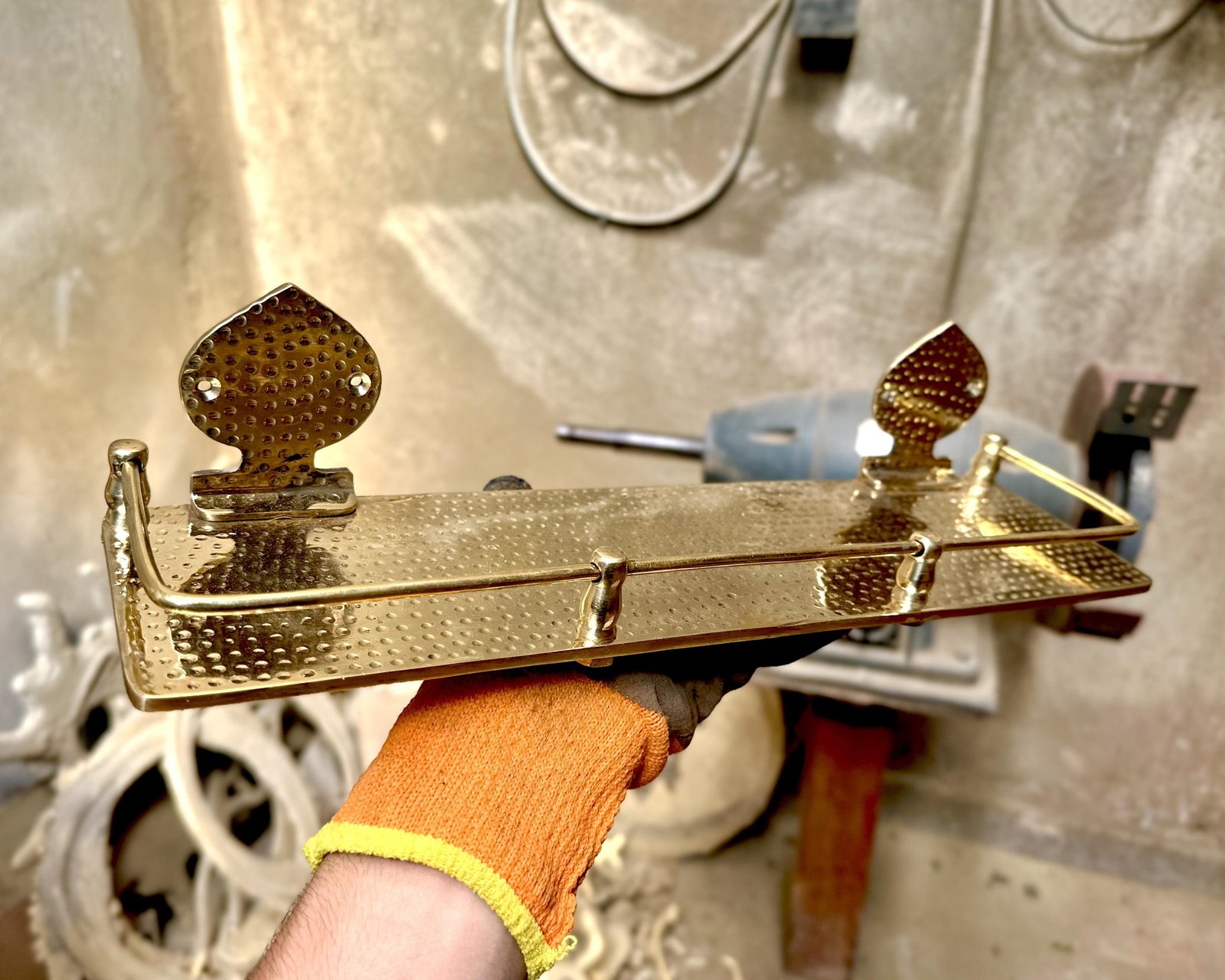 Floating shelves made from brass to to used as bathroom storage, the surface of the wall-mounted bathroom Shelf is hammered,