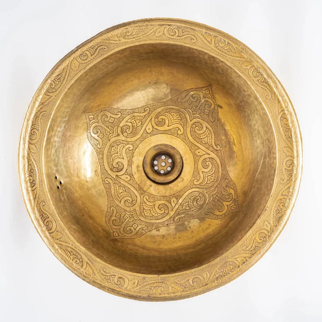 Unlacquered Brass Bathroom Sink – Hand Engraved Drop-In Vanity Basin