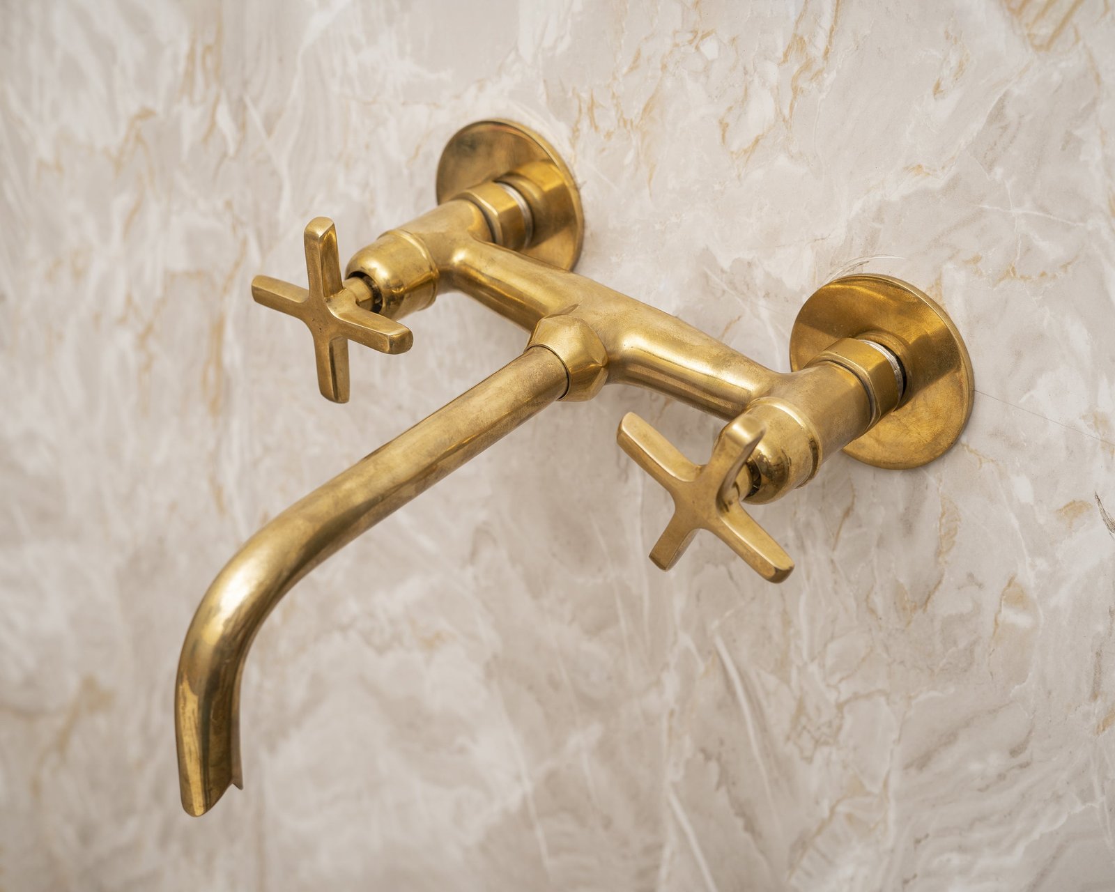 – This brass wall mounted bathroom faucet is made of high-quality brass with a Unlacquered Brass finish.
