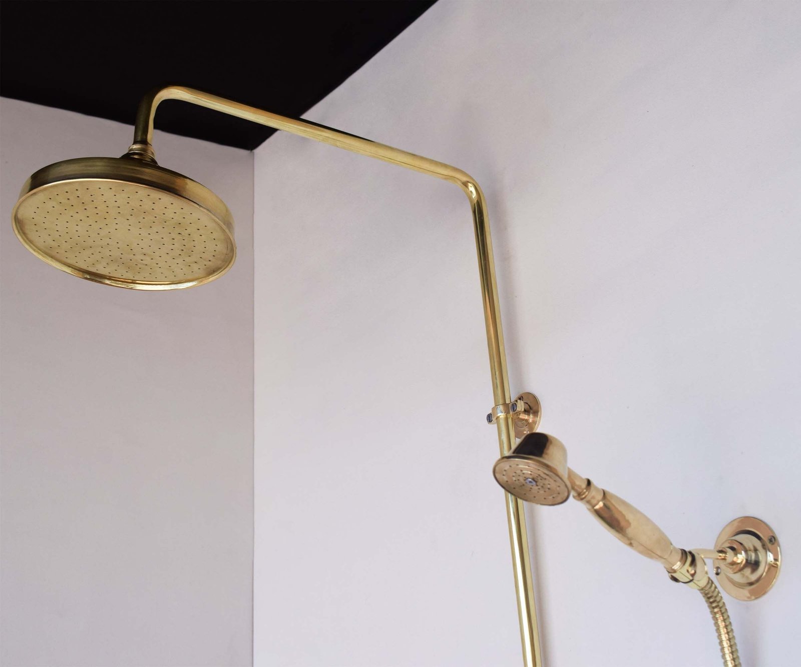 This Exposed shower system is able to transform your bathroom into the retreat you’ve been dreaming of, bask under the Brass Rain Drop Shower Combo with tub faucet Hand Shower’s acquisitive design and Handcrafted detailing.
