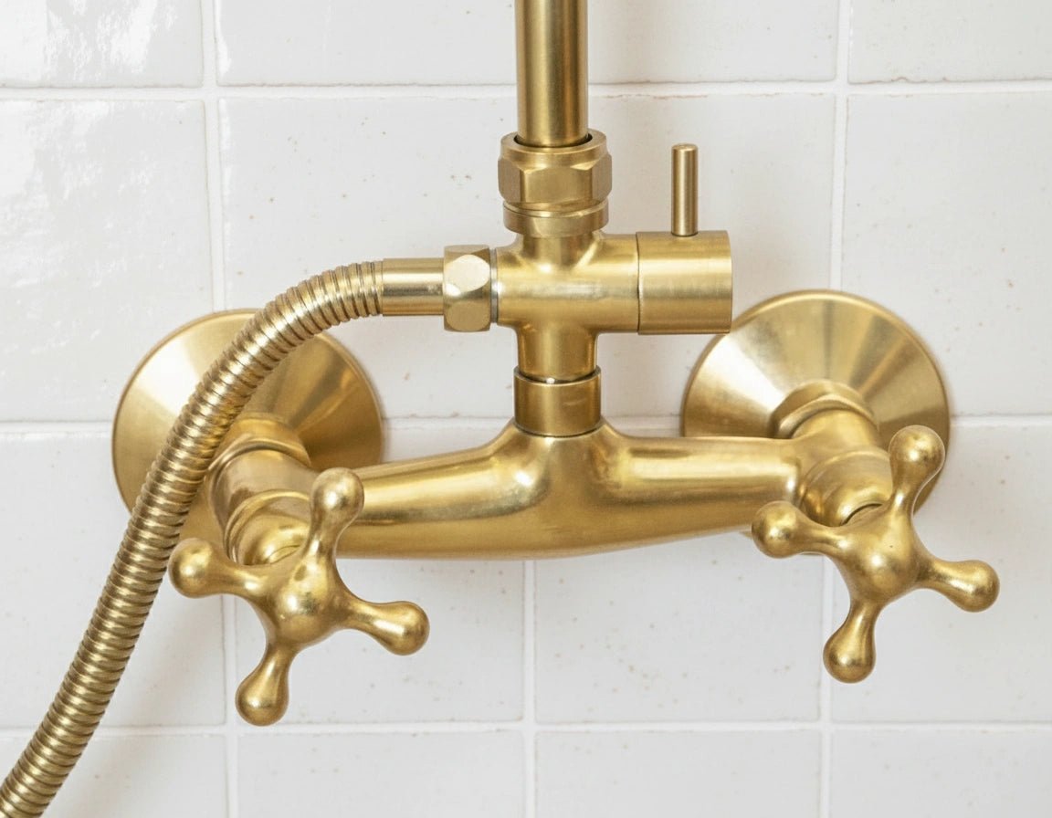Unlacquered Brass Shower System – Wall Mount Mixer with Handheld