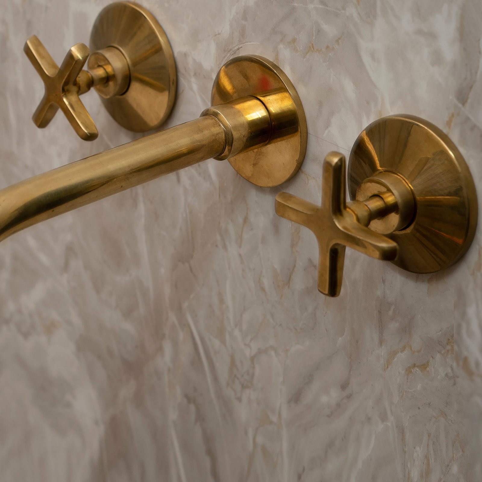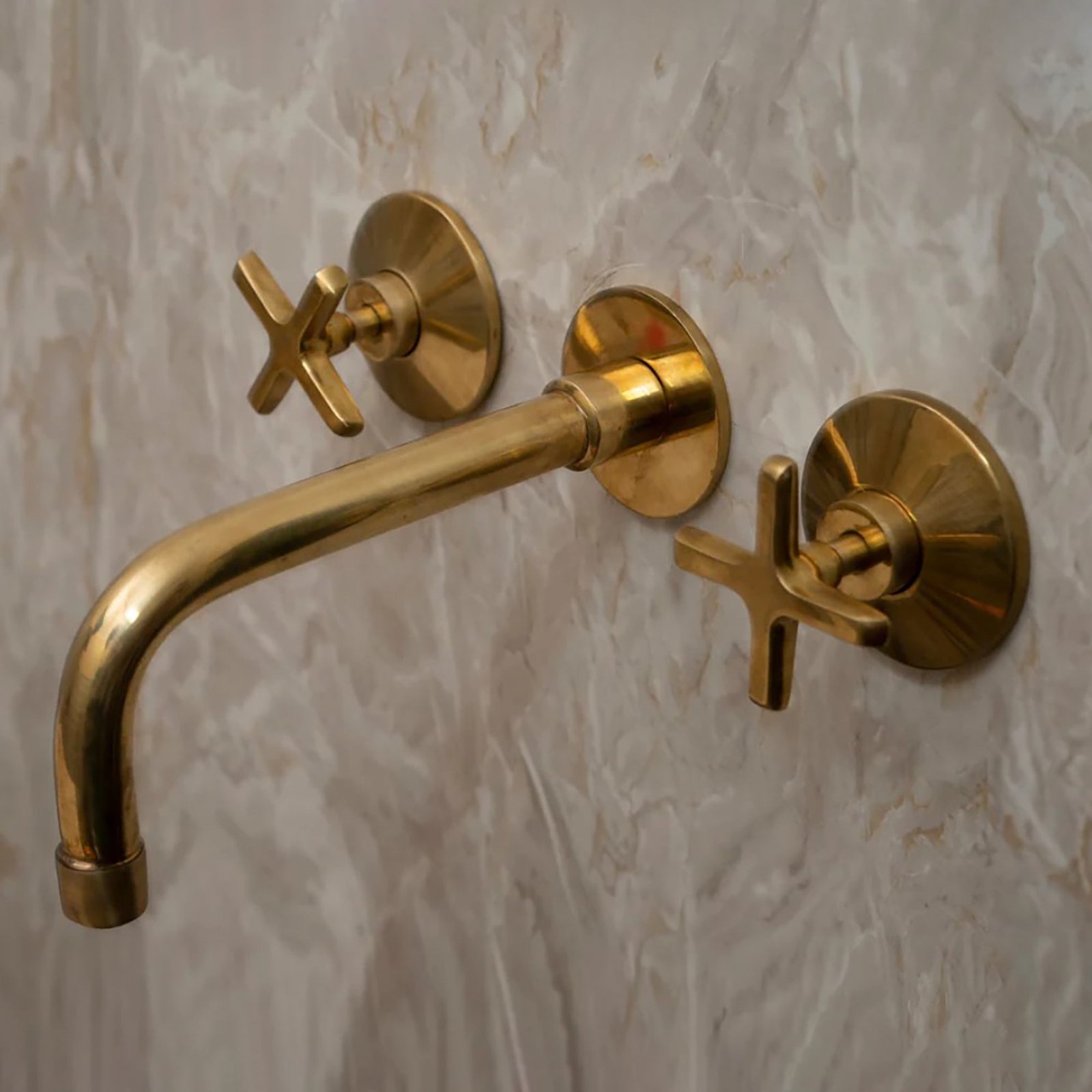 Unlacquered Brass Wall Mounted Bathroom Faucet, Solid Brass Bathroom Faucet With Cross Handle