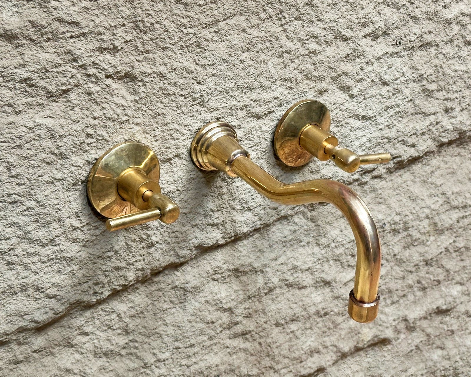 Solid Brass Wall Mounted Faucet, Unlacquered Brass Bathroom Faucet
