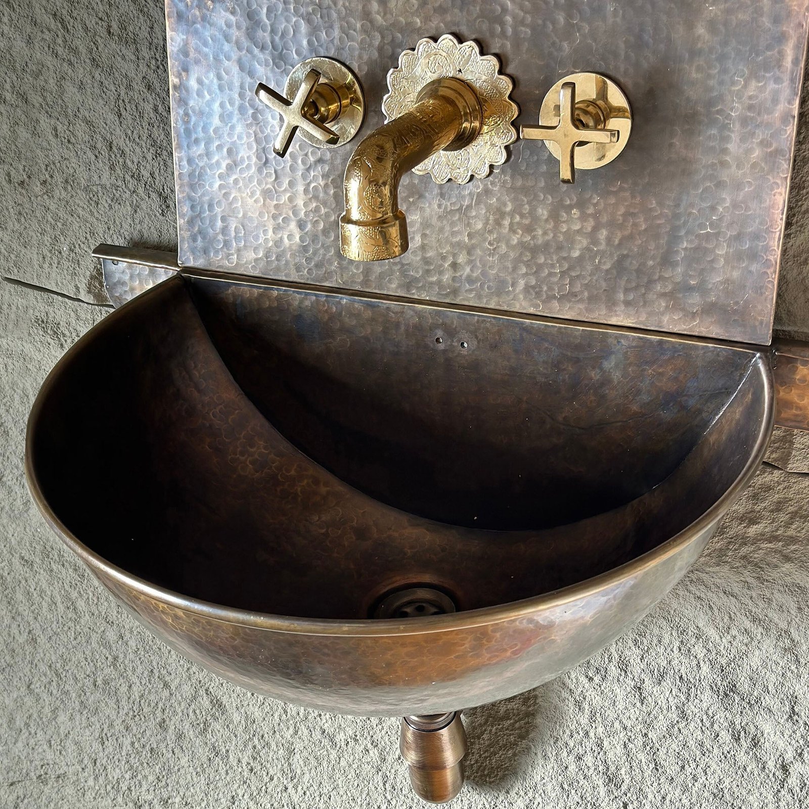 The brass faucet is designed for use in bathrooms and kitchens and can be used as a sink faucet or a tub faucet. The faucet is handcrafted and features a flat handle (other handles are available)