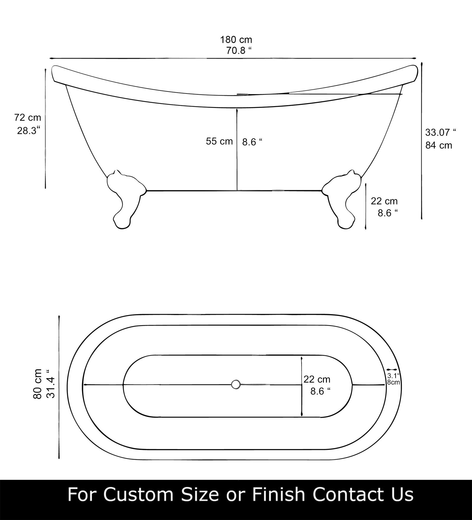 A: Yes, this freestanding tub with a clawfoot design complements a wide range of bathroom styles, from vintage to contemporary.